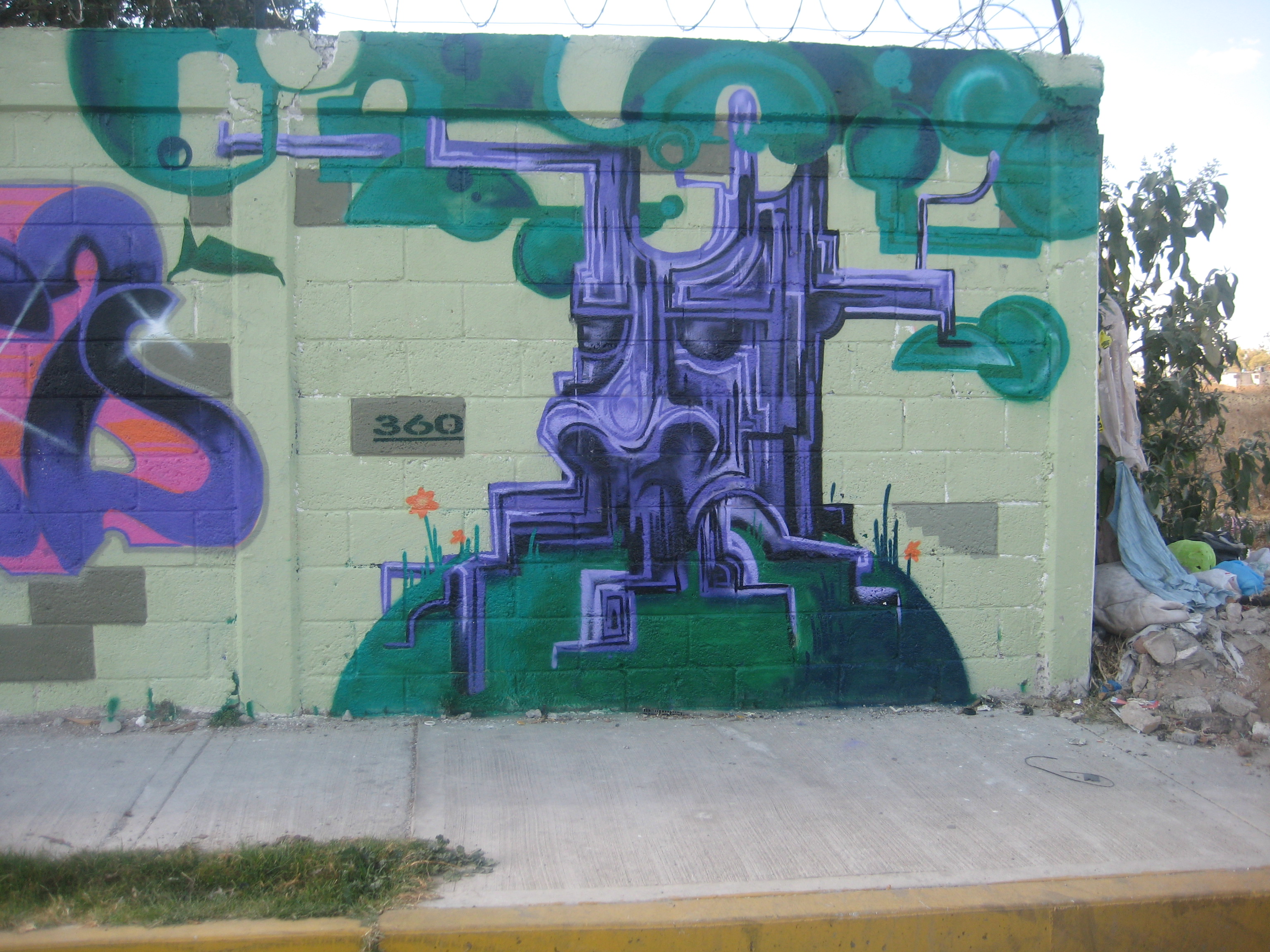 I got to paint at a very cool jam called “El tlempo de un color” just outside Mexico City this December. There where so many good pieces and some amazing characters being painted by some of the area’s best graf artists, it was really inspiring. I did the Beloved piece the first day and the tree the second in like 3 hours. I really loved painting with the rappers and dj throwing down although I was happy to be at the corner, where I could stare out across a field at the projects across the way which was peaceful. I’m not to fond of having people watch me paint, but I did like having the neighborhood people and children stop and chat with me. The middle of the street at this 2+ block event was filled with skate ramps which really added to the show. Thanks to Swer for his hospitality and Ekla for the help getting around the DF. I’ve included flicks of some of the other women who were painting, (what a great feeling to see so many females coming correct!) as well a flicks of my work, I wish I had more pictures to share cause as I said there was some really creative stuff, but I guess I was too busy painting to document properly. I’ll do better next time. I can’t wait to go back!!